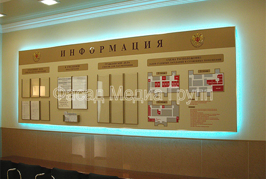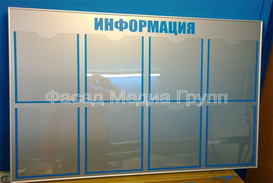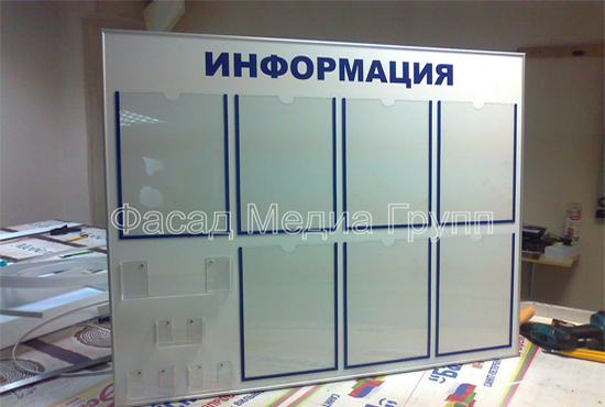 Рекламно-производственная компания "Фасад Медиа Групп" занимается изготовлением информационных стендов «под ключ»: