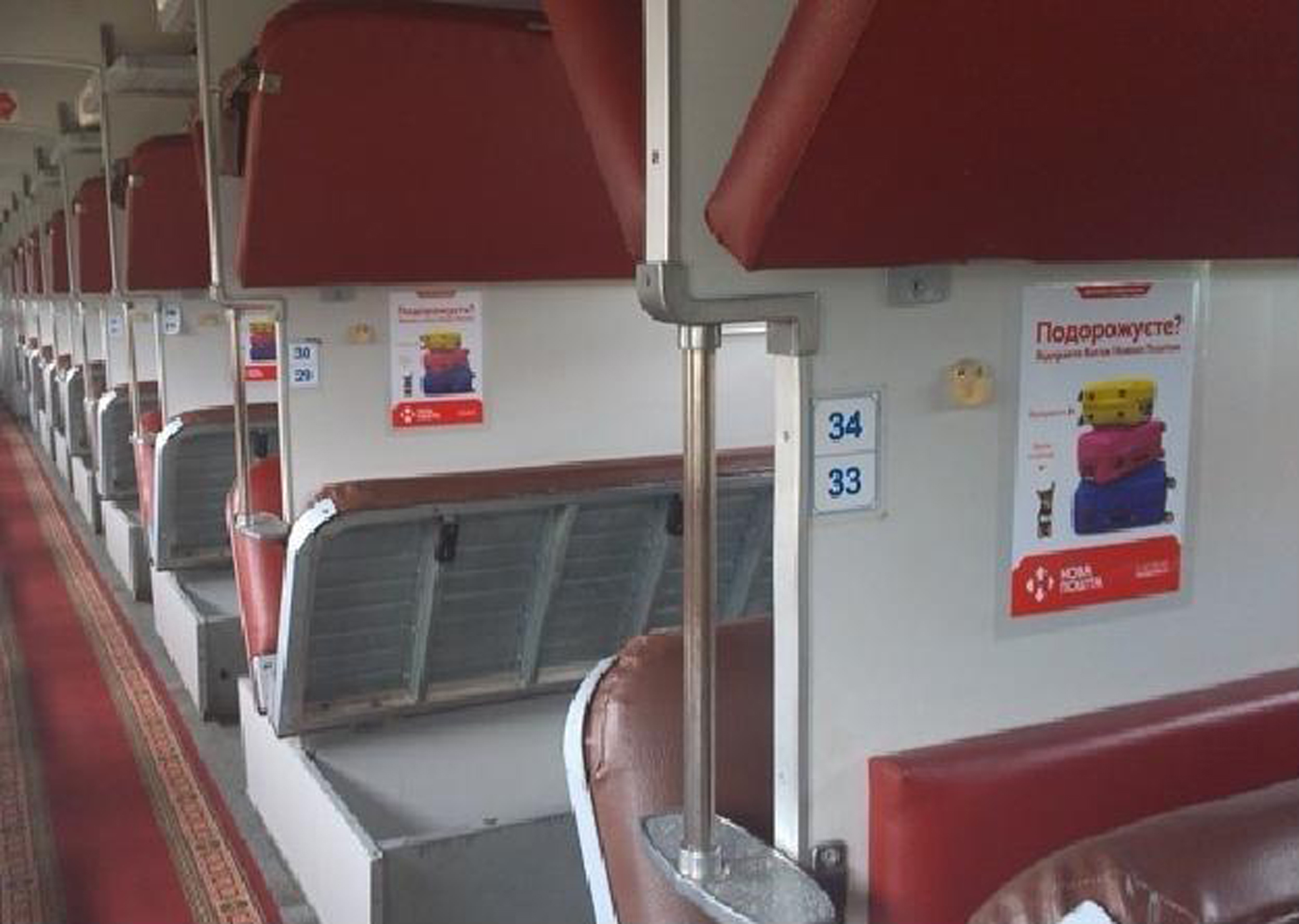 Рекламные стикеры, плакаты в поездах на фото выше