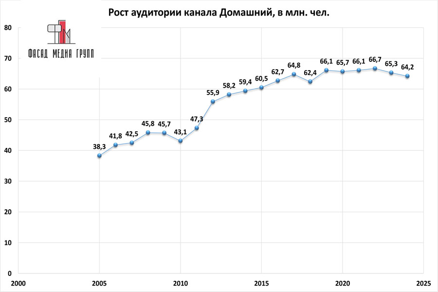 Популярность телеэфира на «Домашнем» приводит к ежегодному увеличению спроса на рекламное время. Для привлечения клиентов из разных регионов России, увеличения процента продаж, повышения имиджа компании и узнаваемости бренда – размещайте рекламу на «Домашнем». «Домашний» – это проверенный и востребованный канал для размещения рекламы на магаданском ТВ. Для размещения рекламы на телевидении обращайтесь в рекламное агентство «Фасад Медиа Групп». Будем рады сотрудничеству.