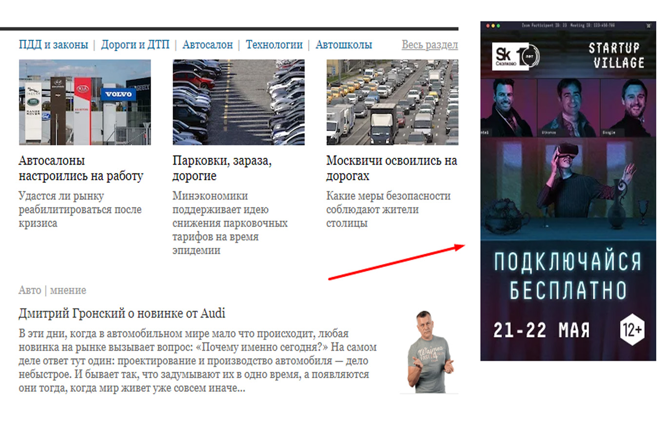 Пример рекламного баннера в интернет-СМИ представлен на фото:
